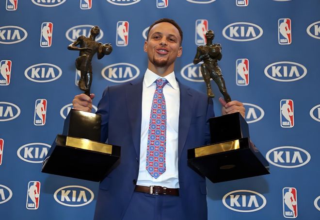 而2014-15赛季夺冠的库里,是为数不多场均得分不到25分的MVP得主,但他在助攻、抢断、三分、罚球和有效命中率方面都要更加出色。