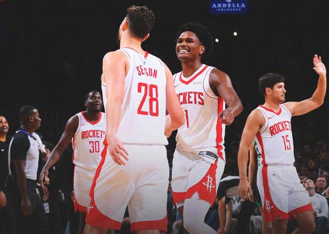 火箭客场104-100险胜勇士,惊险逆转拿下NBA杯C组小组赛关键一战,成功拿到晋级名额。这场比赛的过程跌宕起伏,堪称本赛季至今最精彩的一场胜利,而带领火箭完成这场逆转的,正是他们的二年级新秀、2024年探花秀——里德·谢泼德。开场前没人看好火箭。伤病名单触目惊心:范弗利特赛季报销、电风扇加盟还未首秀、伊森继续受伤缺阵、亚当斯轮休,就连杜兰特也因为家庭私事缺席了比赛。